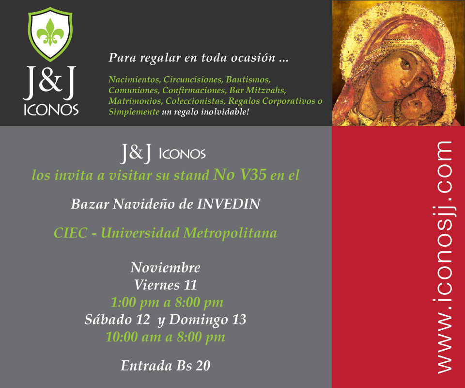 Bazar Navideño Bazar Navideño de INVEDIN Publicado por Iconos J&J el noviembre 7, 2011 J&J Iconos los invita a visitar su stand No V35 en el Bazar Navideño de INVEDIN CIEC – Universidad Metropolitana Noviembre Viernes 11 1:00 pm a 8:00 pm Sábado 12 y Domingo 13 10:00 am a 8:00 pm Entrada Bs 20 Los esperamos! Jeannie & Jeanniffer Comparte esto: Haz clic para compartir en WhatsApp (Se abre en una ventana nueva) WhatsApp Haz clic para compartir en Telegram (Se abre en una ventana nueva) Telegram Haz clic para compartir en Facebook (Se abre en una ventana nueva) Facebook Haz clic para compartir en X (Se abre en una ventana nueva) X Haz clic para compartir en Pinterest (Se abre en una ventana nueva) Pinterest Haz clic para compartir en Tumblr (Se abre en una ventana nueva) Tumblr Haz clic para enviar un enlace por correo electrónico a un amigo (Se abre en una ventana nueva) Correo electrónico Haz clic para imprimir (Se abre en una ventana nueva) Imprimir Me gusta Cargando... Relacionado
