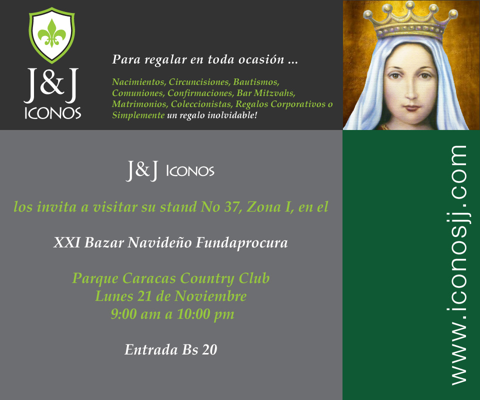 Bazar Navideño XXI Bazar Navideño Fundaprocura – Country Club Publicado por Iconos J&J el noviembre 20, 2011 J&J Iconos los invita a visitar su stand No 37, Zona I, en el XXI Bazar Navideño Fundaprocura Parque Caracas Country Club Lunes 21 de Noviembre 9:00 am a 10:00 pm Entrada Bs 20 Los esperamos! Jeannie & Jeanniffer Comparte esto: Haz clic para compartir en WhatsApp (Se abre en una ventana nueva) WhatsApp Haz clic para compartir en Telegram (Se abre en una ventana nueva) Telegram Haz clic para compartir en Facebook (Se abre en una ventana nueva) Facebook Haz clic para compartir en X (Se abre en una ventana nueva) X Haz clic para compartir en Pinterest (Se abre en una ventana nueva) Pinterest Haz clic para compartir en Tumblr (Se abre en una ventana nueva) Tumblr Haz clic para enviar un enlace por correo electrónico a un amigo (Se abre en una ventana nueva) Correo electrónico Haz clic para imprimir (Se abre en una ventana nueva) Imprimir Me gusta Cargando... Relacionado
