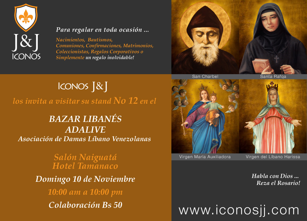 Bazar, Bazar Navideño Invitación al BAZAR LIBANÉS Publicado por Iconos J&J el noviembre 8, 2013noviembre 8, 2013 Iconos J&J los invita a visitar su stand No 12 en el BAZAR LIBANÉS ADALIVE Asociación de Damas Líbano Venezolanas Salón Naiguatá Hotel Tamanaco Domingo 10 de Noviembre 10:00 am a 10:00 pm Colaboración Bs 50 Comparte esto: Haz clic para compartir en WhatsApp (Se abre en una ventana nueva) WhatsApp Haz clic para compartir en Telegram (Se abre en una ventana nueva) Telegram Haz clic para compartir en Facebook (Se abre en una ventana nueva) Facebook Haz clic para compartir en X (Se abre en una ventana nueva) X Haz clic para compartir en Pinterest (Se abre en una ventana nueva) Pinterest Haz clic para compartir en Tumblr (Se abre en una ventana nueva) Tumblr Haz clic para enviar un enlace por correo electrónico a un amigo (Se abre en una ventana nueva) Correo electrónico Haz clic para imprimir (Se abre en una ventana nueva) Imprimir Me gusta Cargando... Relacionado