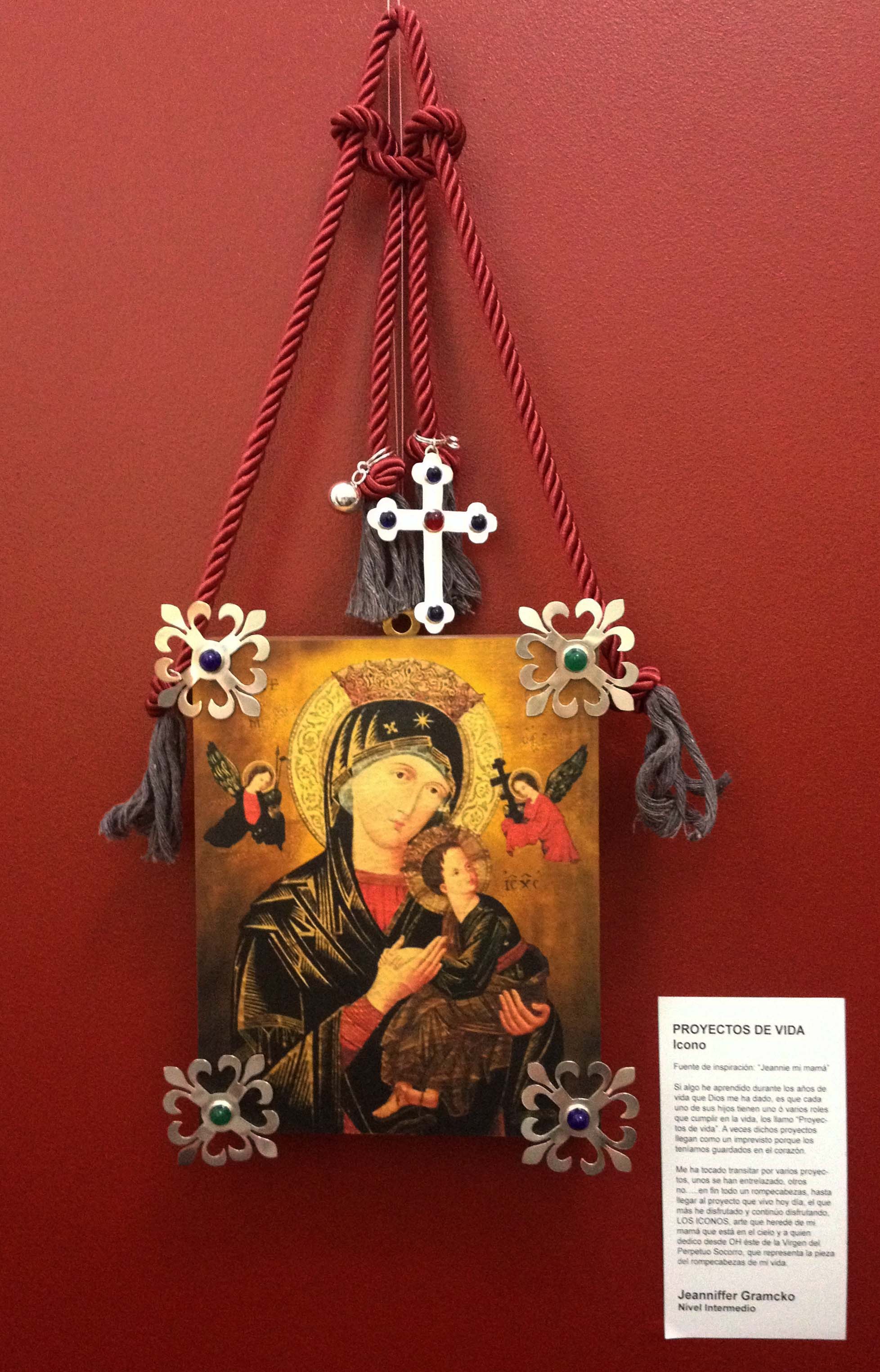 Virgen del Perpetuo Socorro / primer trabajo como estudiante de orfebrería / piezas sobre el icono en plata con flores de lis y cruz/ Jeanniffer Gramcko/ expuesto en el taller de orfebrería OH – los Naranjos – CCS / Orfebrería el Hatillo / ROMPE CABEZAS – XIX Muestra artística de los alumnos y orfebres de su Galería – Escuela.